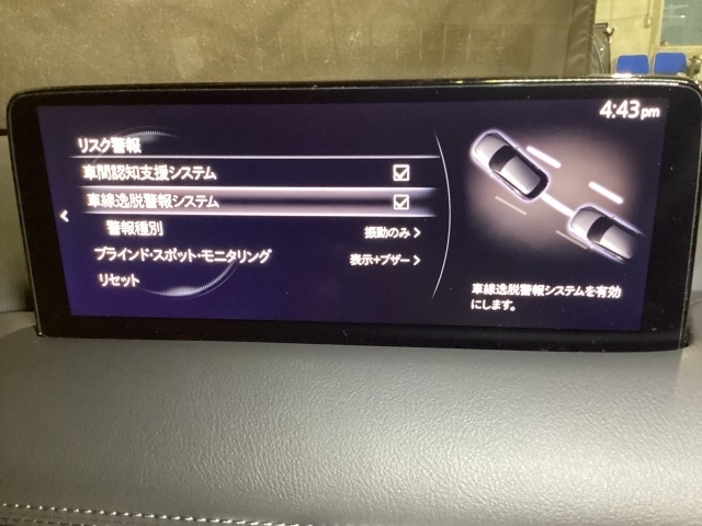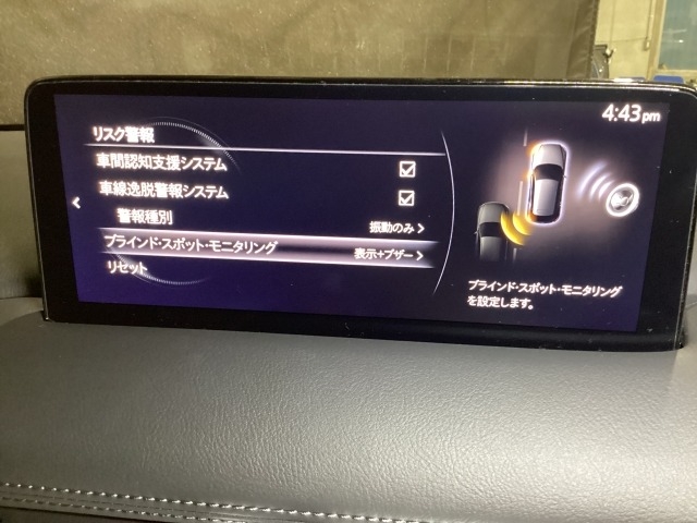 後方左右の死角に入ってしまった車両をセンサーが感知しドライバーにお知らせしてくれるブラインドスポットモニタリングシステム。高速の合流などでも安心できます。