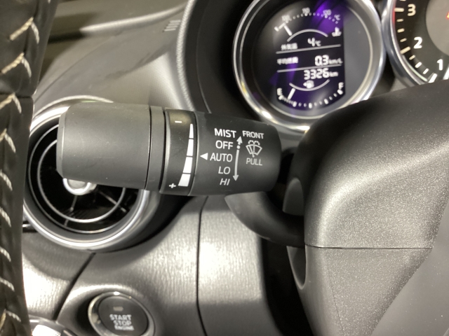 レバーをAUTOの位置にしているとき、レインセンサーが雨を感知すると、雨量に応じてワイパーが自動で作動してくれるオートワイパーを装備!設定変更で非作動にすると、間欠作動に固定されます。