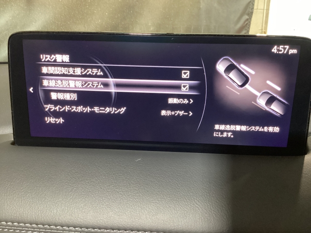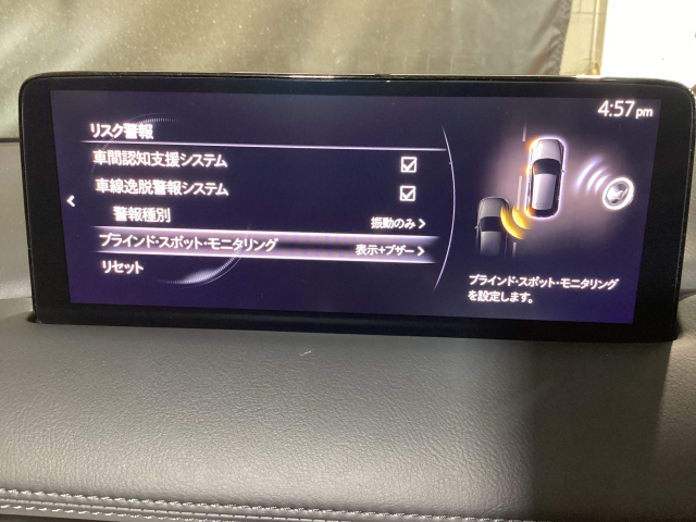 後方左右の死角に入ってしまった車両をセンサーが感知しドライバーにお知らせしてくれるブラインドスポットモニタリングシステム。高速の合流などでも安心できます。