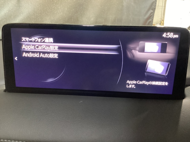 Apple Carplay・Android Auto対応!マツダ コネクト(コマンダーコントロール)でスマートフォンを操作して、通話、音楽を聴いたり、マップで目的地を調べることができます。