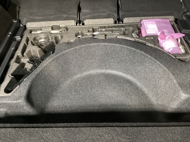 スペアタイヤの代わりに、簡易パンク修理キット搭載。釘が刺さった程度の穴でしたら補修可能です。パンクの箇所や状況によっては補修できない場合もございます。予めご了承下さい。