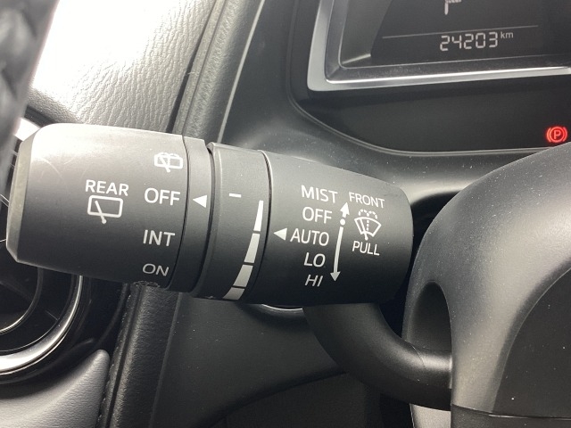 レバーをAUTOの位置にしているとき、レインセンサーが雨を感知すると、雨量に応じてワイパーが自動で作動してくれるオートワイパーを装備!設定変更で非作動にすると、間欠作動に固定されます。