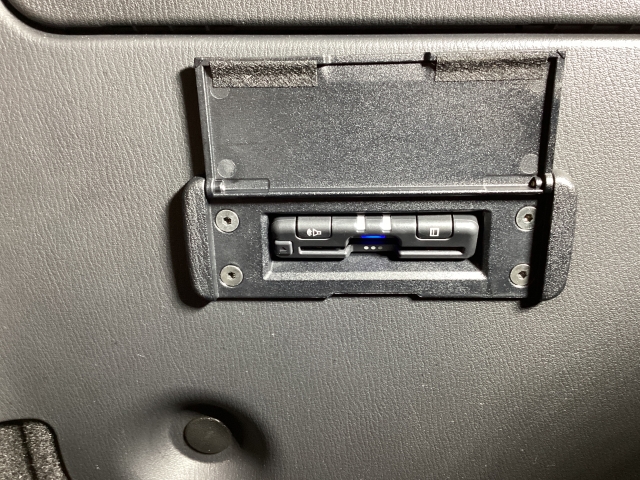 運転席と助手席の間には鍵のかかる収納がございます。オープン時でも安心ですね♪