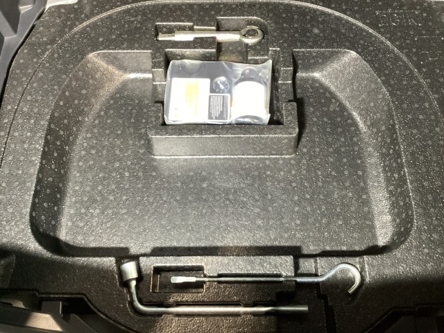 スペアタイヤの代わりに、簡易パンク修理キット搭載。釘が刺さった程度の穴でしたら補修可能です。パンクの箇所や状況によっては補修できない場合もございます。予めご了承下さい。